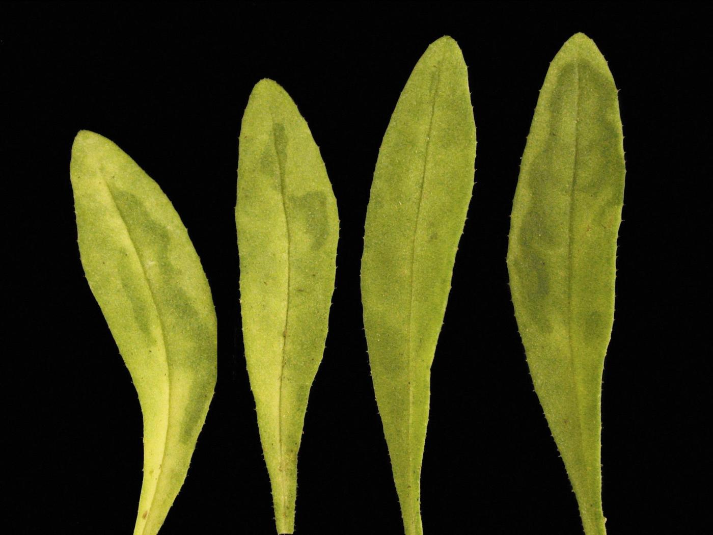 Feuille : présence de mosaïques ou de marbrures vert pâle et vert foncé débutant généralement à la base du limbe ou près de l’apex. Chez les calibrachoas, présence parfois de petits anneaux rouges, jaunes ou blanchâtres. Les feuilles peuvent être petites, montrer des malformations (folioles étroites, filiformes, bosselées) ou un enroulement de la marge en forme de cuillère. Les feuilles sèchent puis meurent, mais il est rare que l’ensemble des feuilles soient touchées.
