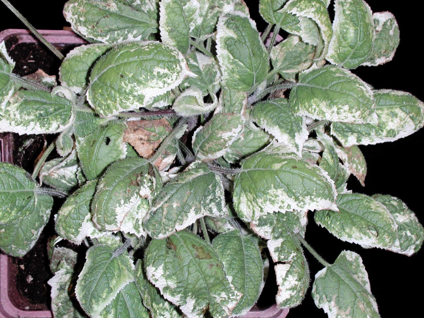 Description: Un plant de sauge montre des feuilles en forme de cuillère inversée. Quelques feuilles présentent de petites taches brunes ou sont brûlées. Les tests de laboratoire ont révélé la présence du virus de la tache nécrotique de l'impatiente (INSV).   Ce résultat est surprenant puisqu’il est rare qu’un problème parasitaire affecte presque 100 % des plants comme dans ce cas. Par contre, s’il y avait des thrips dans la serre ou si les plants proviennent de plants mères infectés, il est possible que le v… En savoir plus