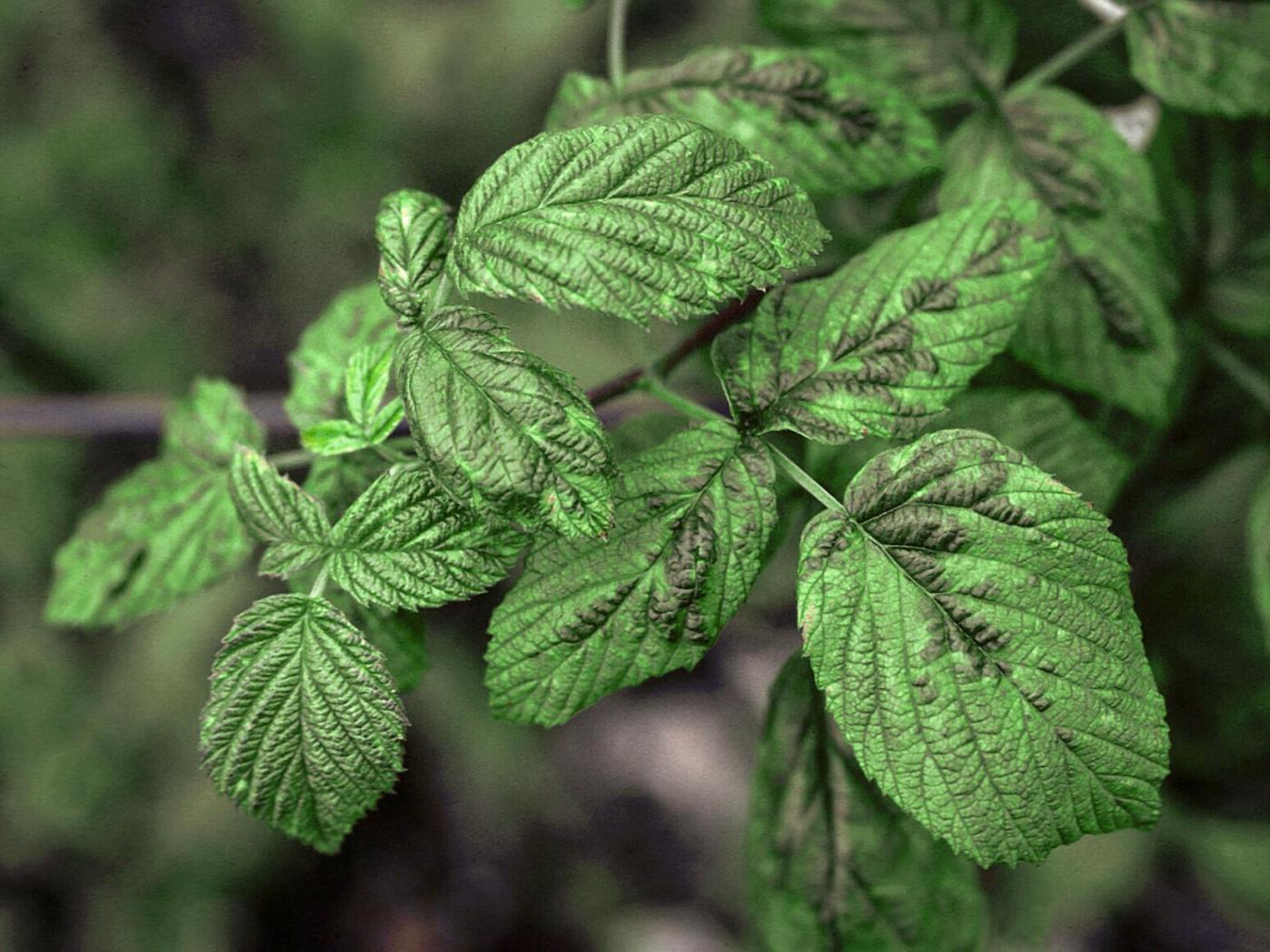 Légende: Mosaïque et malformation des feuilles de framboisier