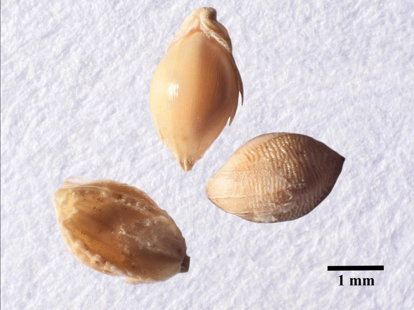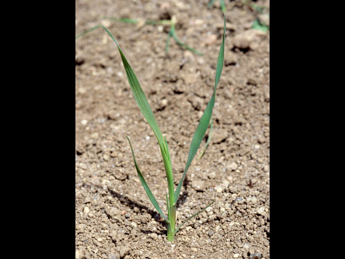 Les feuilles sont de couleur vert pâle à vert grisâtre. Le limbe est plat, glabre, un peu rugueux aux marges et mesure jusqu’à 45 cm de longueur et de 4 à 8 mm de largeur. La ligule est membraneuse et mesure de 1,5 à 3 mm de longueur. Elle est irrégulière, le sommet est pointu et une encoche est présente de chaque côté. La gaine est glabre et fendue avec les marges se chevauchant. Les oreillettes sont absentes.