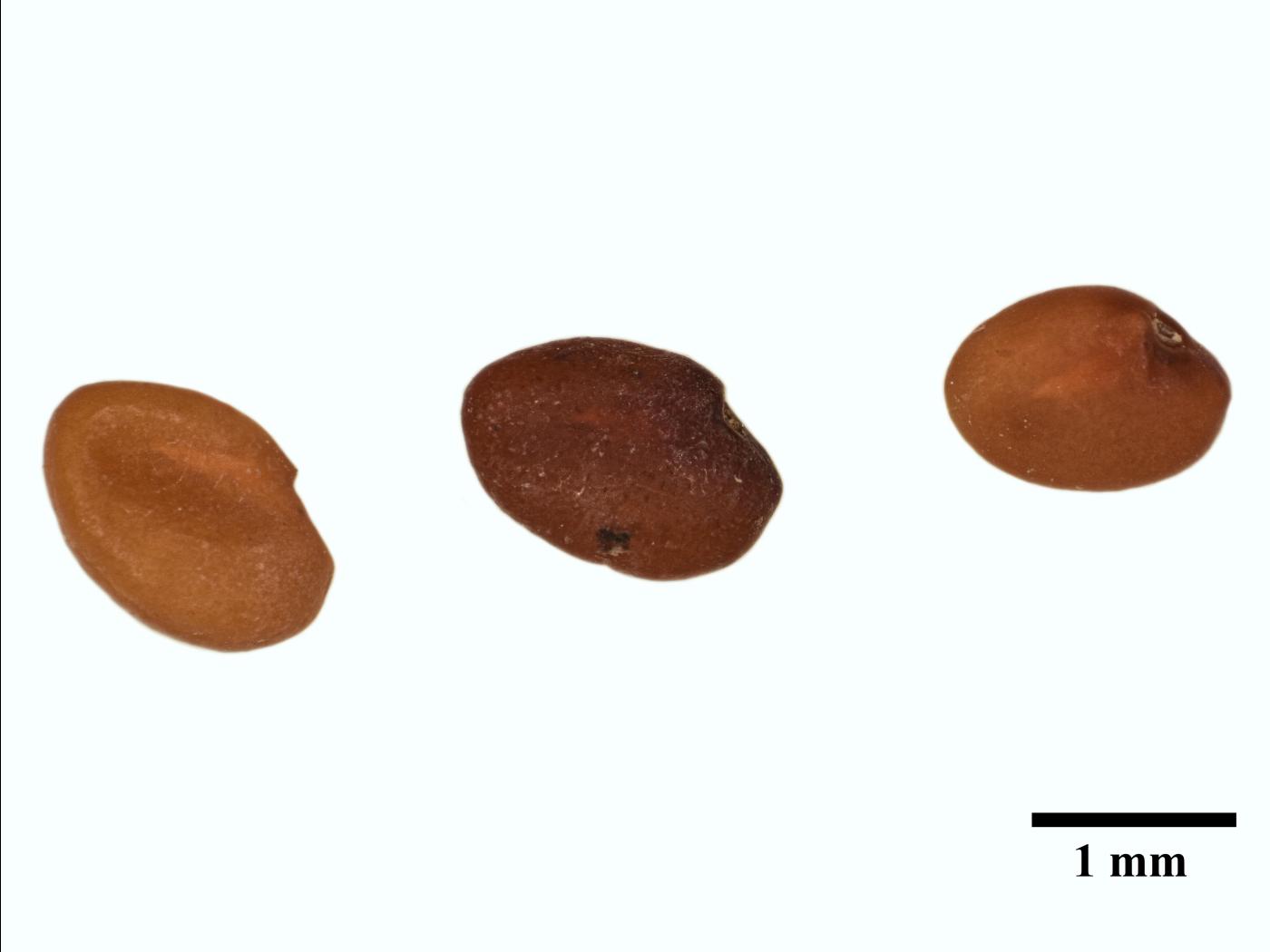 Le fruit est une gousse indéhiscente, oblongue et droite qui mesure de 3 à 4 mm de longueur. Elle est brune ou noire et contient habituellement une seule graine (parfois deux ou trois). Les graines sont de forme ovale et mesurent de 2 à 2,5 mm de longueur. Elles sont de couleur jaune ou verdâtre.