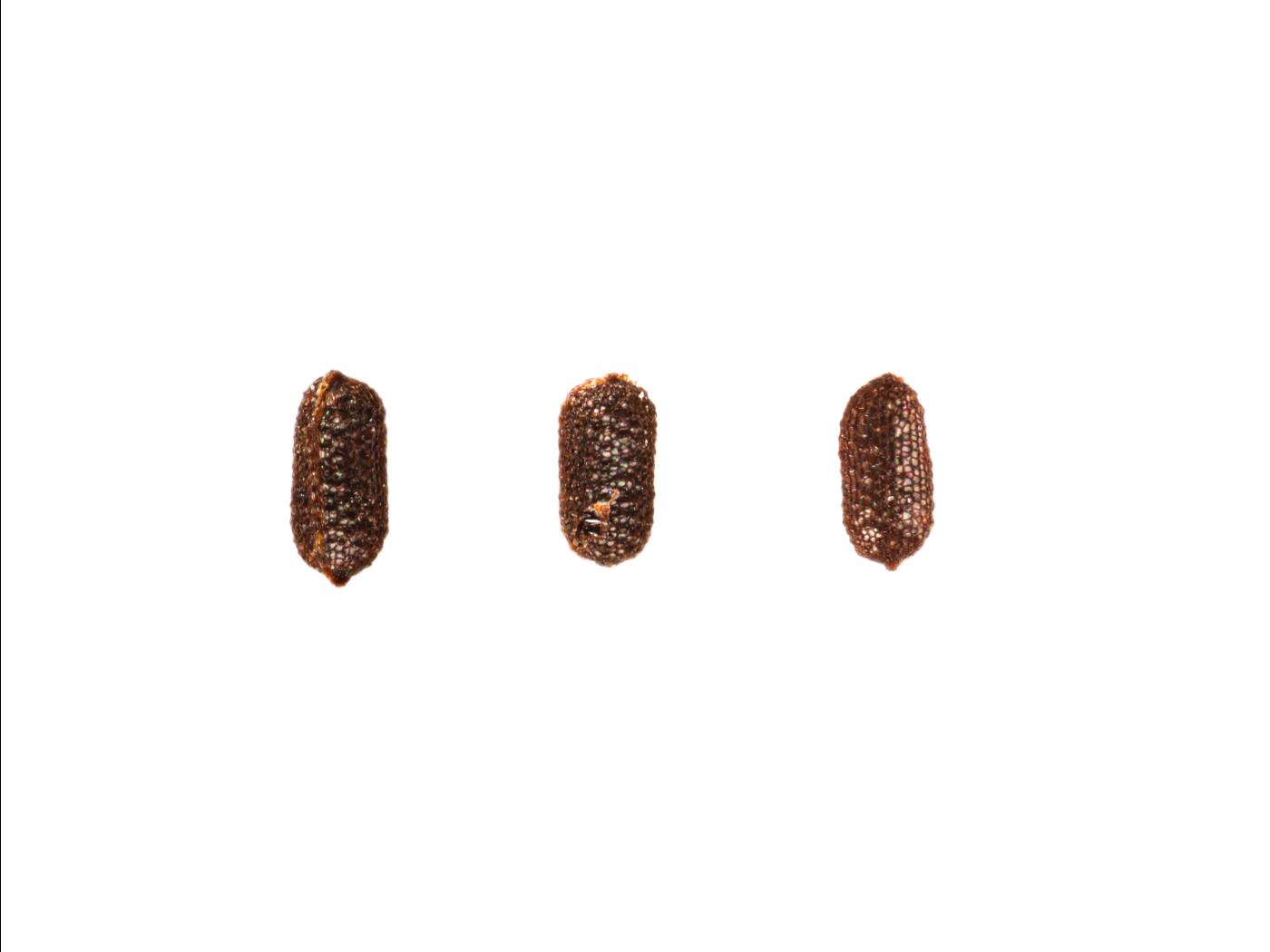 Le fruit est une capsule triloculaire qui mesure de 6 à 10 mm de longueur et de 3,5 à 5 mm de largeur. Elle renferme de nombreuses graines noires mesurant de 0,8 à 1,2 mm de longueur.