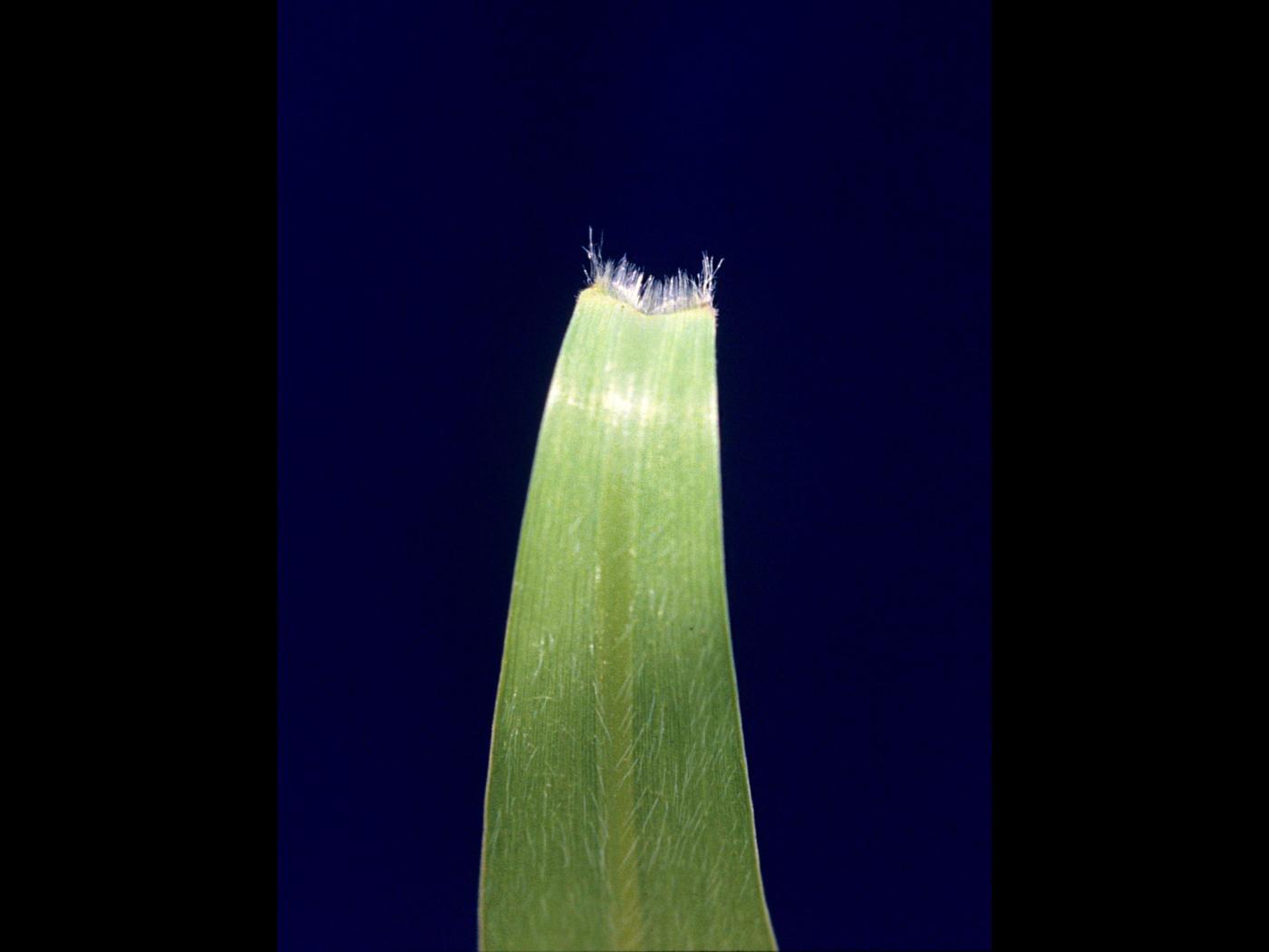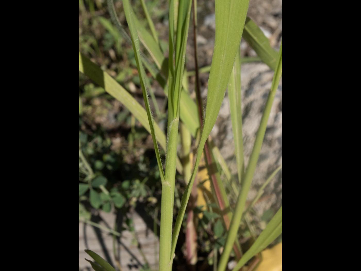 Les feuilles sont étroitement lancéolées et terminées en pointe. Elles mesurent souvent plus de 20 cm de longueur et de 1 à 2 cm de largeur. Le limbe est plat et se rétrécit à sa base, près de la ligule. De nombreux poils courts sont présents sur la face supérieure du limbe, parfois aussi sur la face inférieure. Les marges de la gaine sont munies de poils. La ligule est constituée d’une rangée de poils hérissés d’environ 2 mm de longueur.
