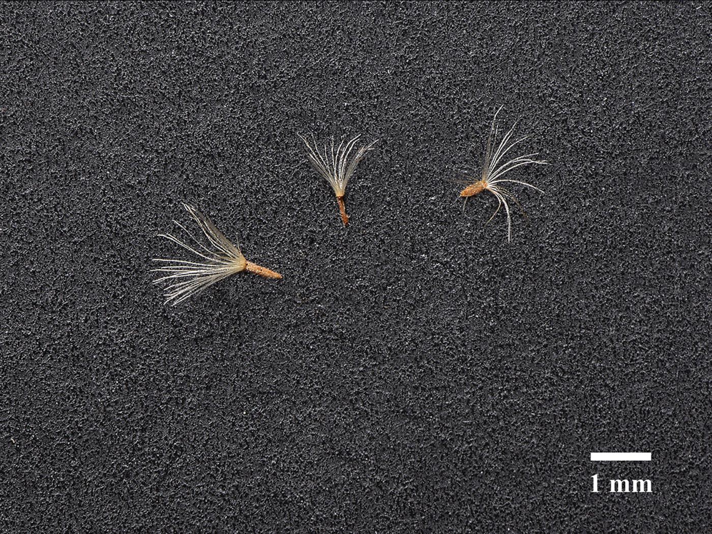 Les fruits sont des cypsèles de forme obconique étroite. Ils mesurent de 1 à 1,5 mm de longueur, sont striés et pubescents. Ils sont munis d’une aigrette à soie simple qui demeure attachée à maturité. L’aigrette mesure de 1,8 à 2,2 mm de longueur.