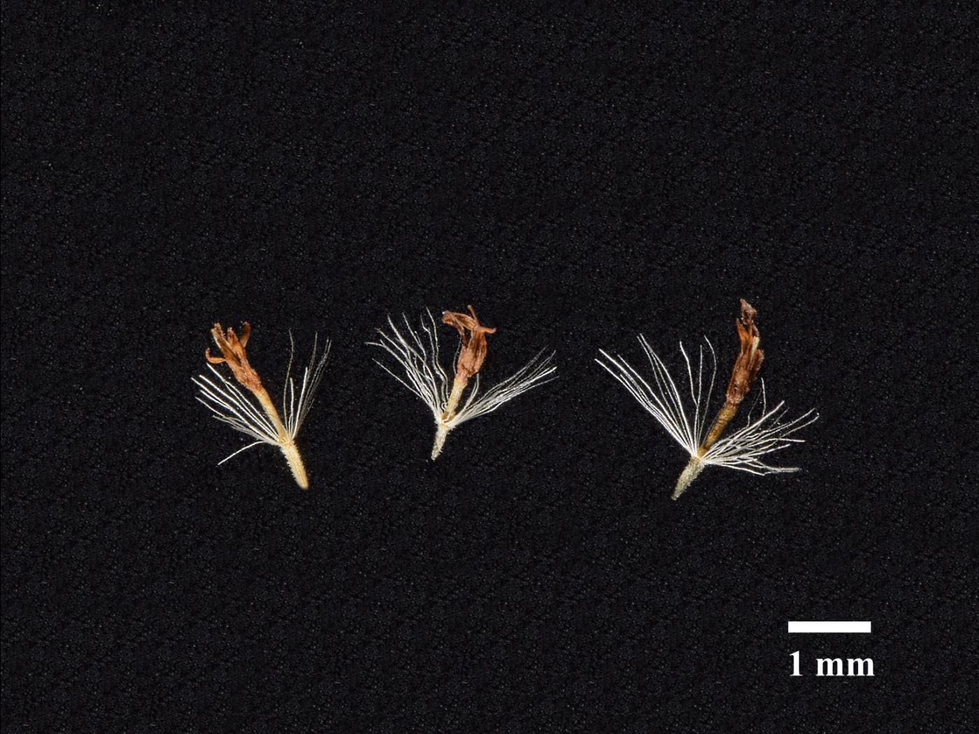Le fruit est une cypsèle brunâtre comprenant des poils fins. Elle est de forme conique et mesure 1,5 mm de longueur. La cypsèle comprend une aigrette à son sommet qui peut atteindre 2,5 mm de longueur.