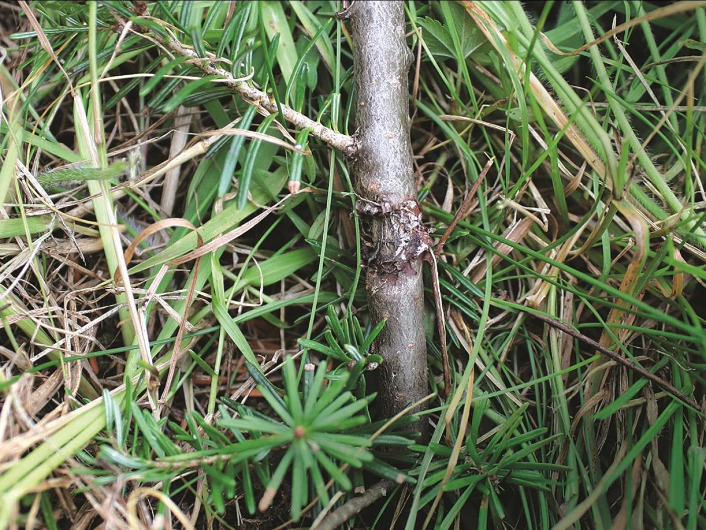Passer trop près du tronc des sapins lors des opérations de fauchage peut abîmer gravement l’écorce, surtout chez les jeunes arbres. Des champignons peuvent coloniser ces blessures et entraîner le dépérissement ou la mort des arbres à plus ou moins long terme.