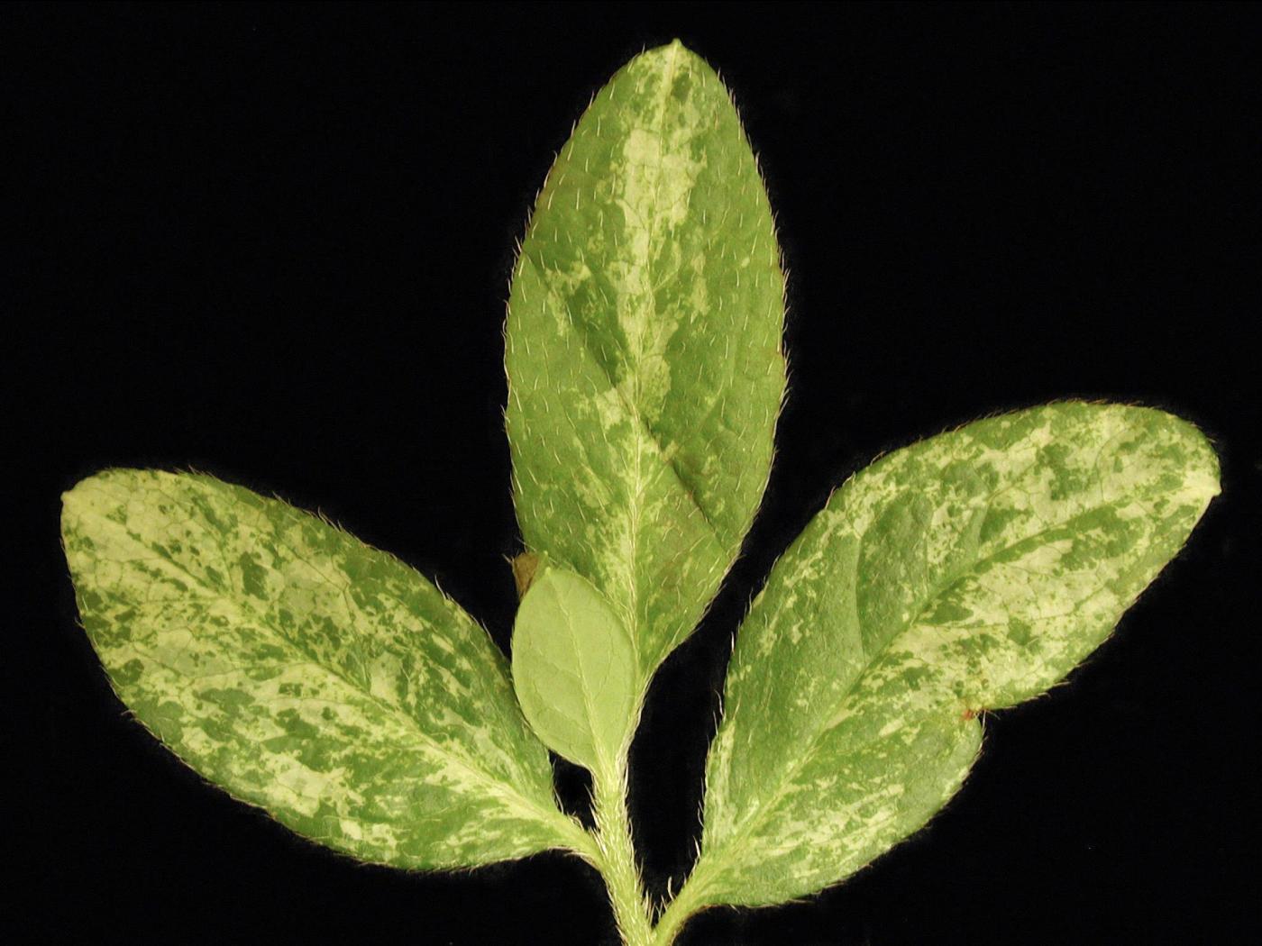 Description: Les feuilles d’un rhododendron (cv 'Promise') cultivée en serre présentent une importante mosaïque irrégulière et blanche. L’anomalie de coloration est répartie sur l’ensemble du limbe. Les symptômes sont présents uniquement sur les feuilles terminales. Les tests de laboratoire se sont avérés négatifs pour la détection de virus.   Comme 100 % des plants de rhododendrons de ce cultivar sont affectés, l’origine du problème est de nature non parasitaire puisque les agents phytopathogènes affectent … En savoir plus