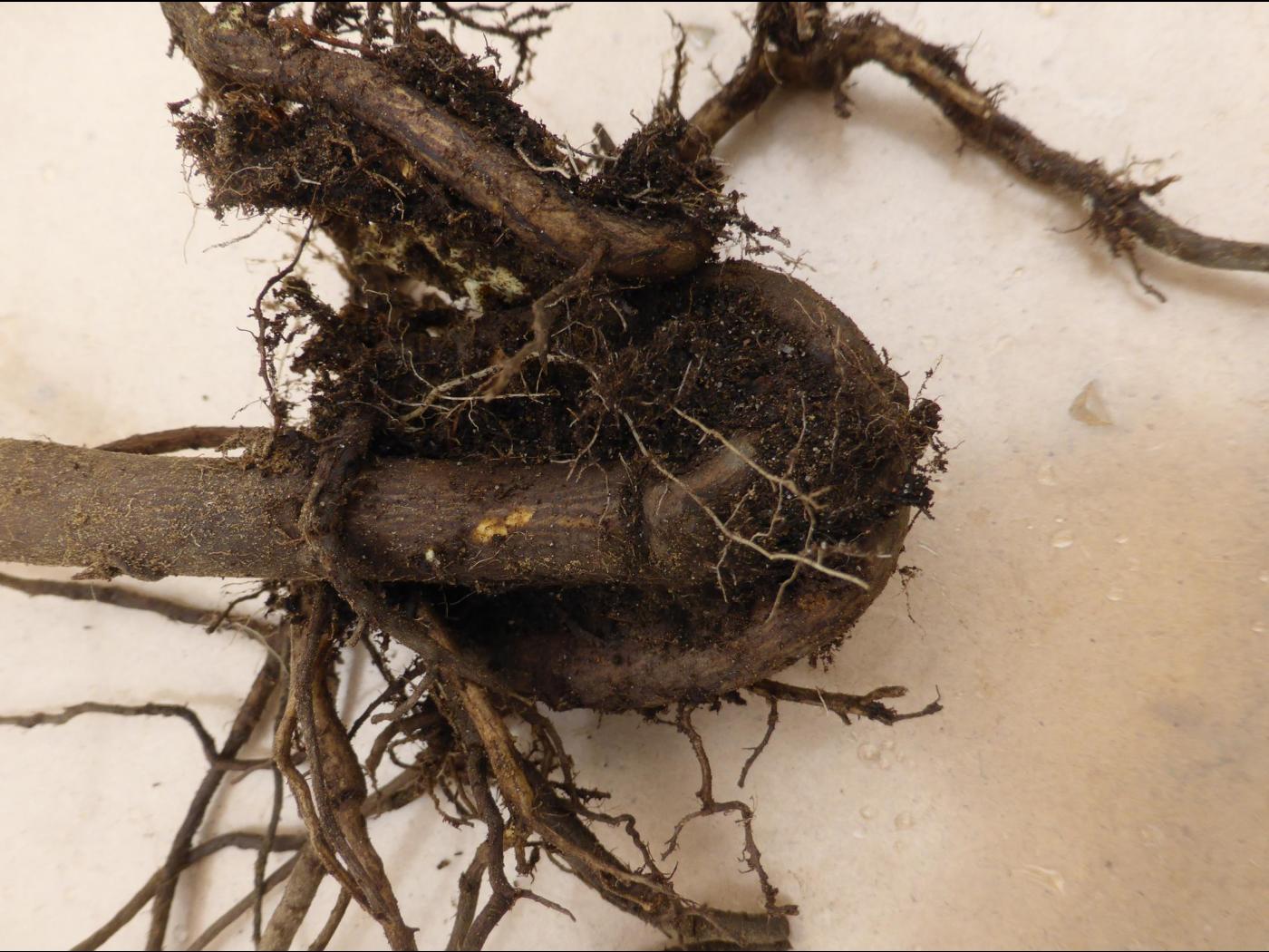 Racine : Le système racinaire est peu développé, absence de racines latérales solides.