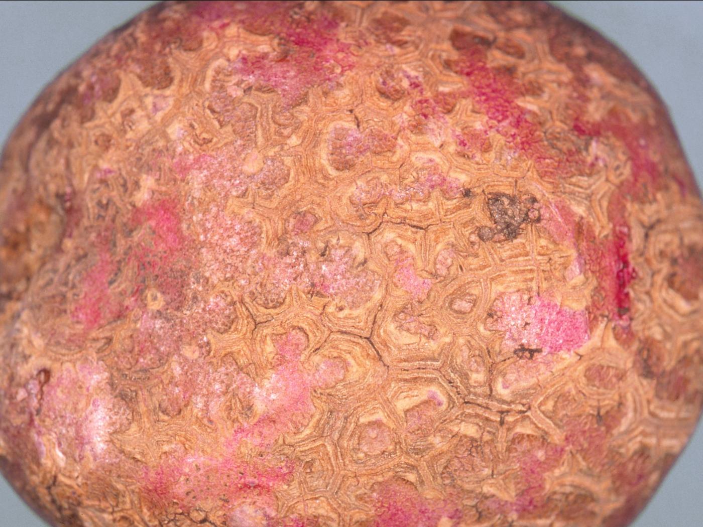 Tubercule : le périderme montre une surface rugueuse, plus foncée et plus épaisse que la normale. Il est gercé ou craquelé en profondeur et ressemble à une peau d’éléphant ou d’alligator.