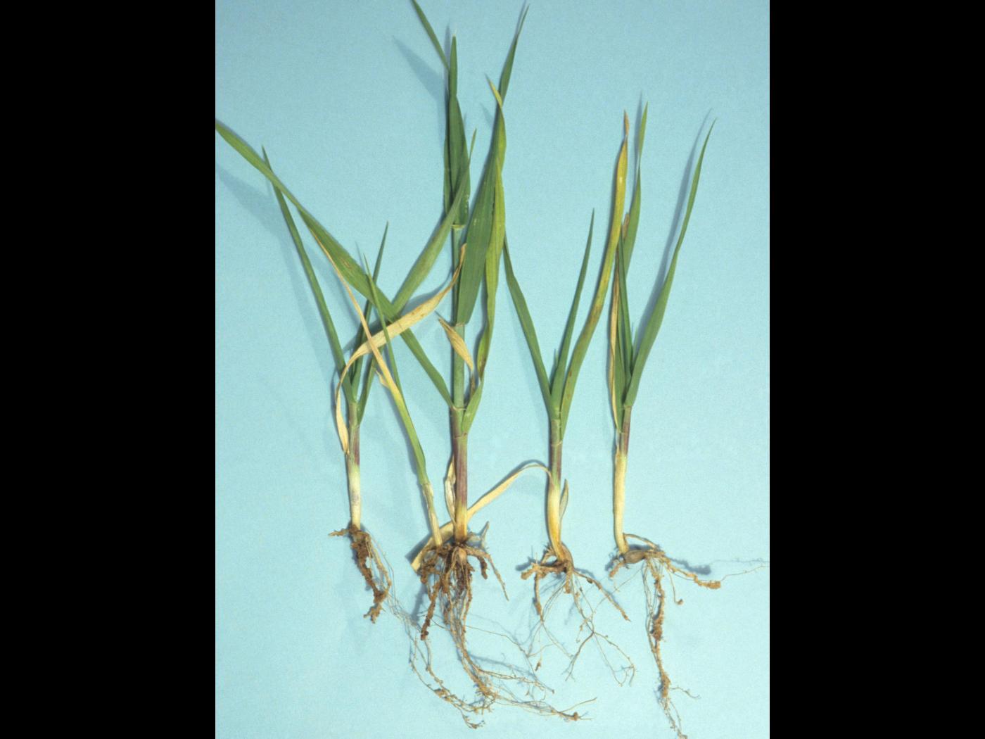 Racine : inhibition de l'élongation des racines engendrant le développement d'un système racinaire court, rabougri, cassant et ayant l'aspect d'un buisson. Les racines sont parfois jaunes à brunes.