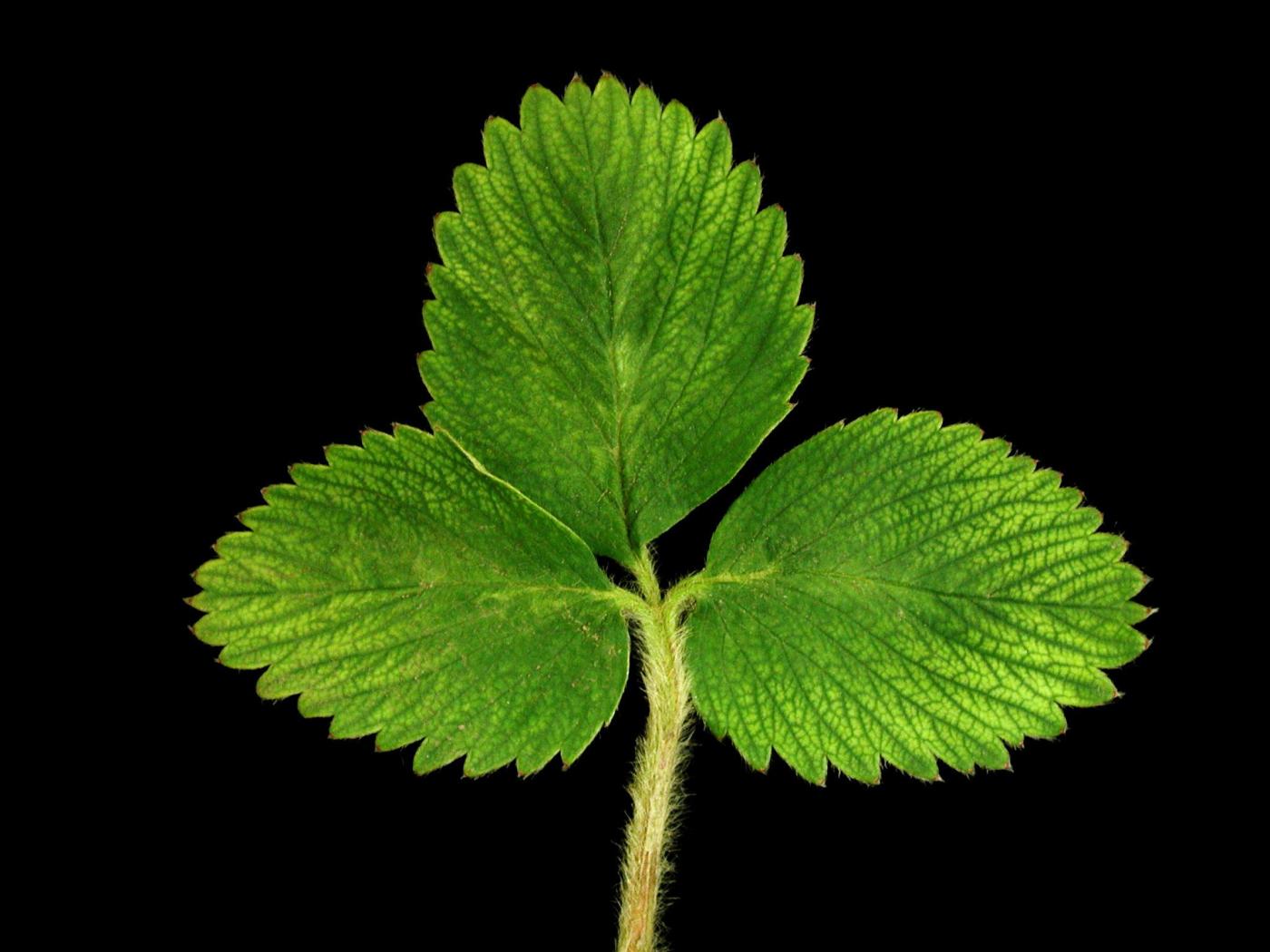 Légende: Taches blanchâtres sur feuille de fraisier