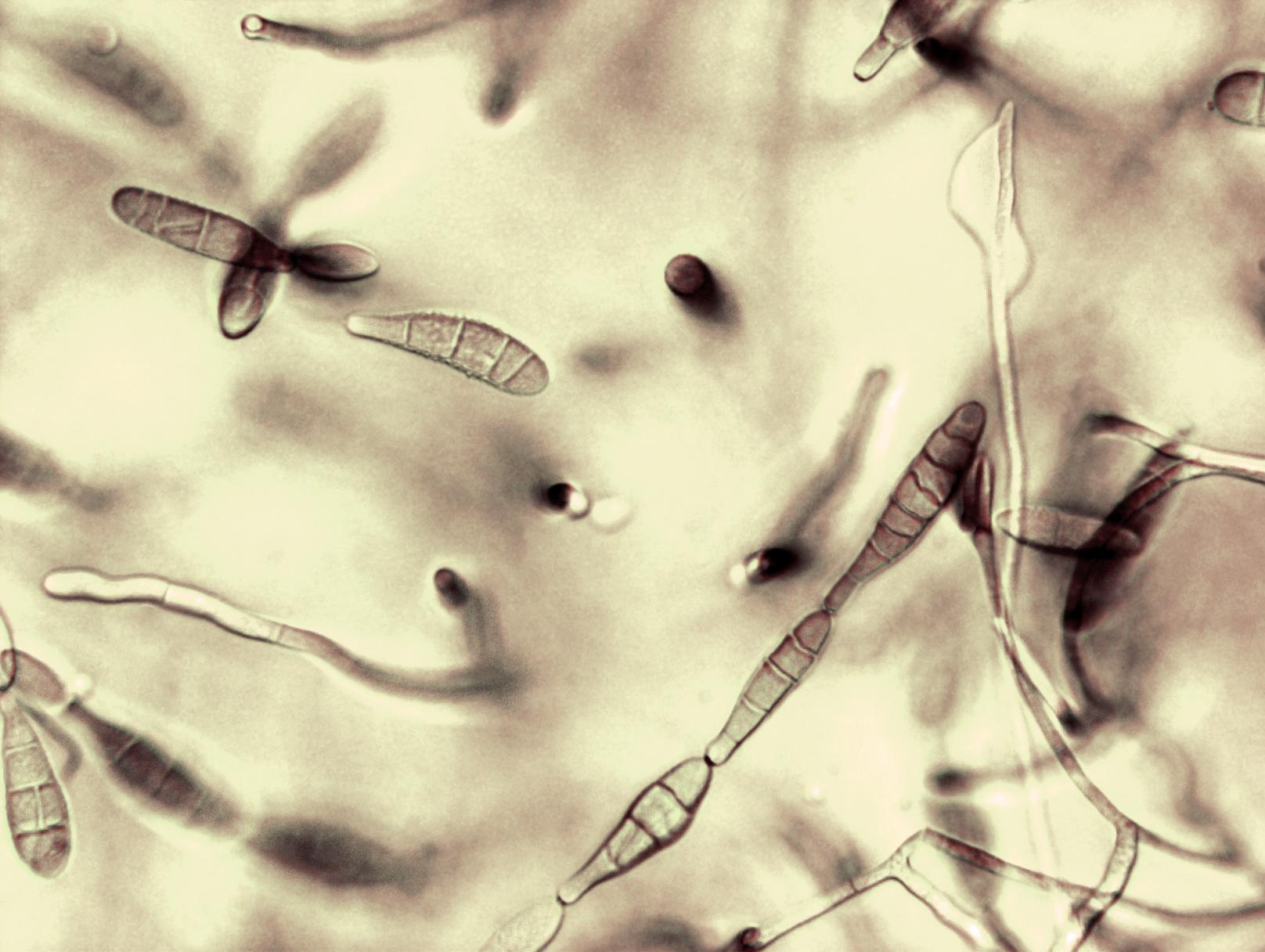 : Conidies en chaîne et conidiophores d'Alternaria tenuissima