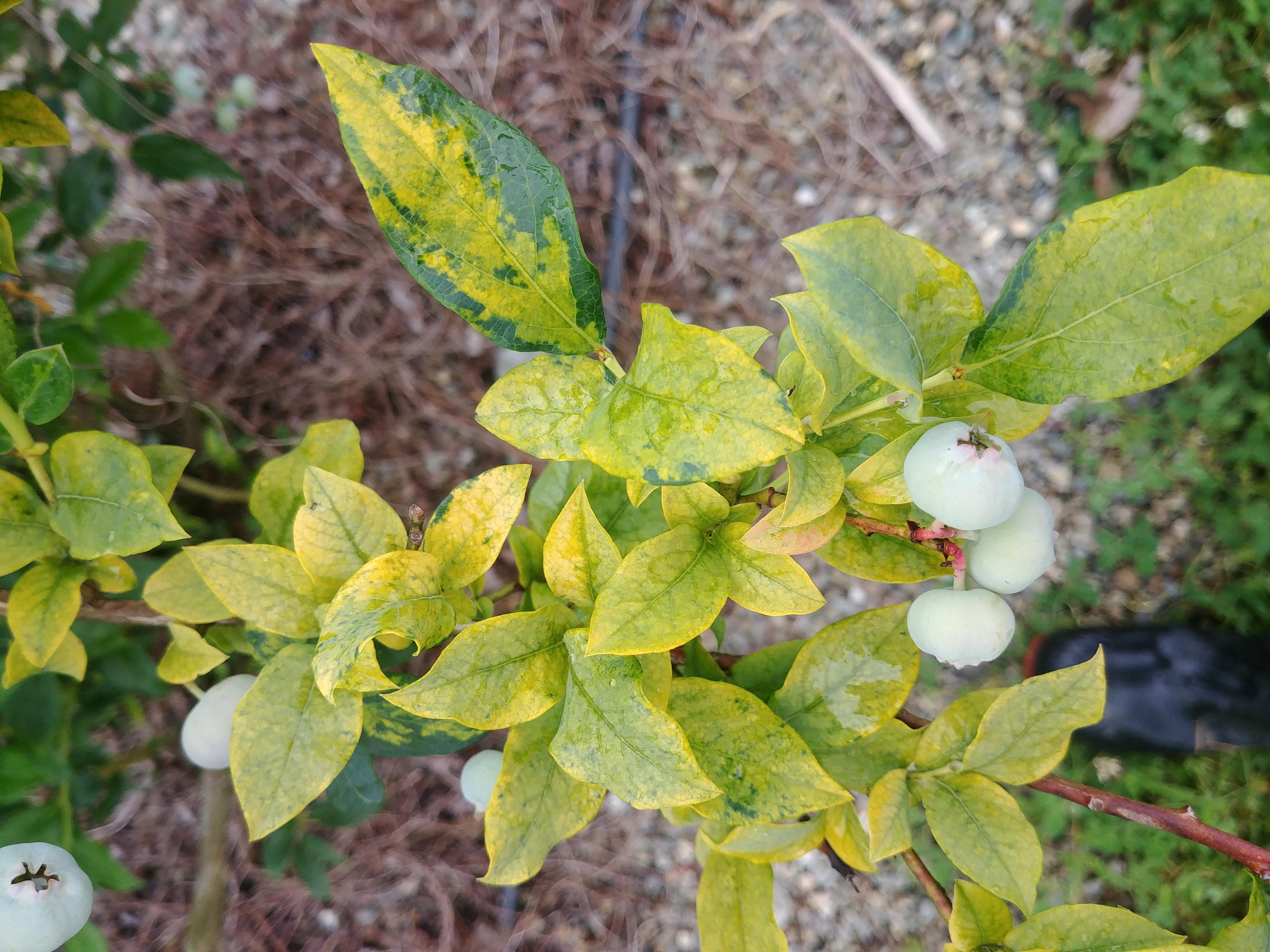 : Symptômes du virus de la mosaïque du bleuet (BlMav) sur un plant de bleuet en corymbe (cv. Patriot)