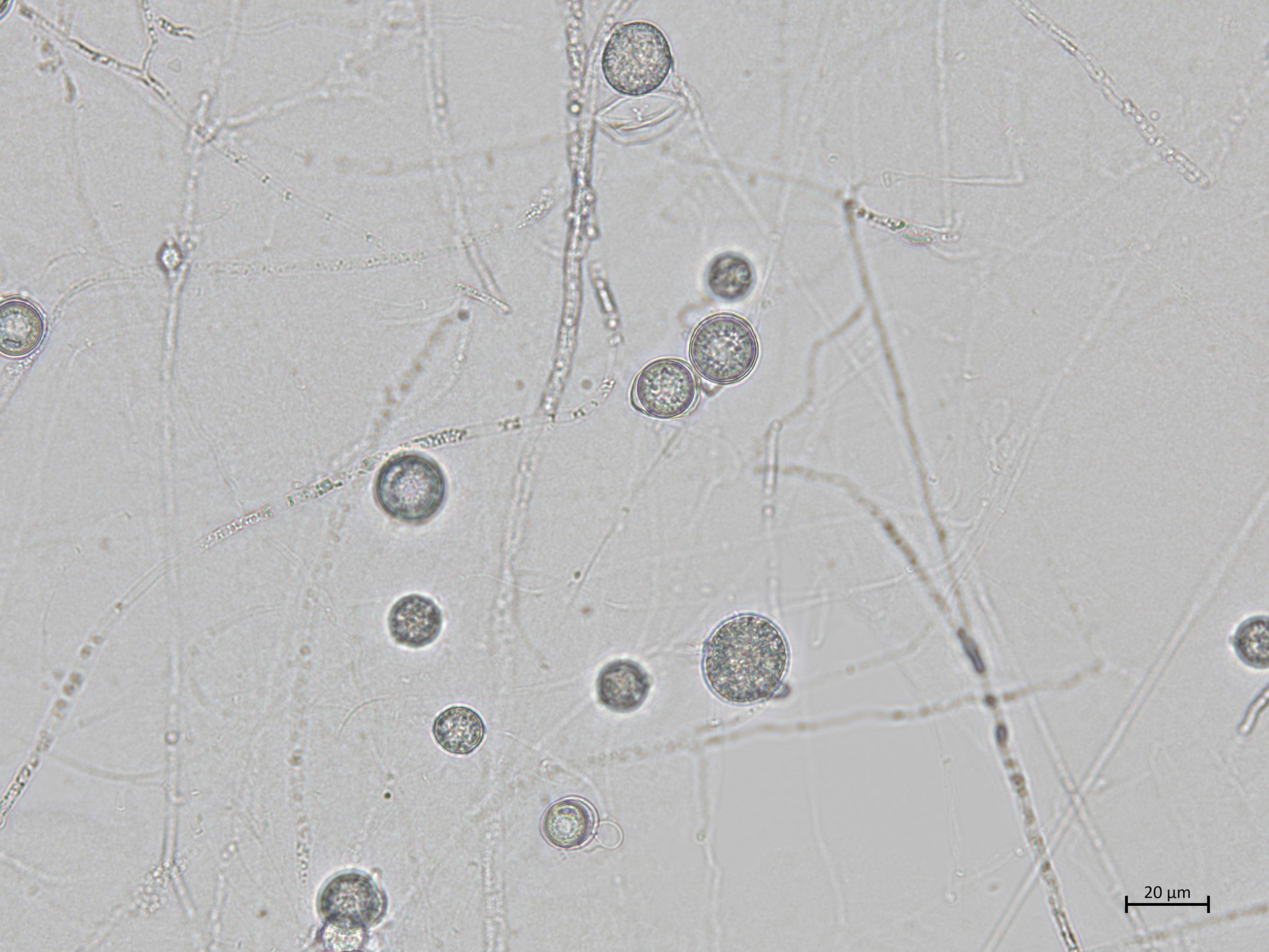Légende: Sporanges de Globisporangiium irregulare.