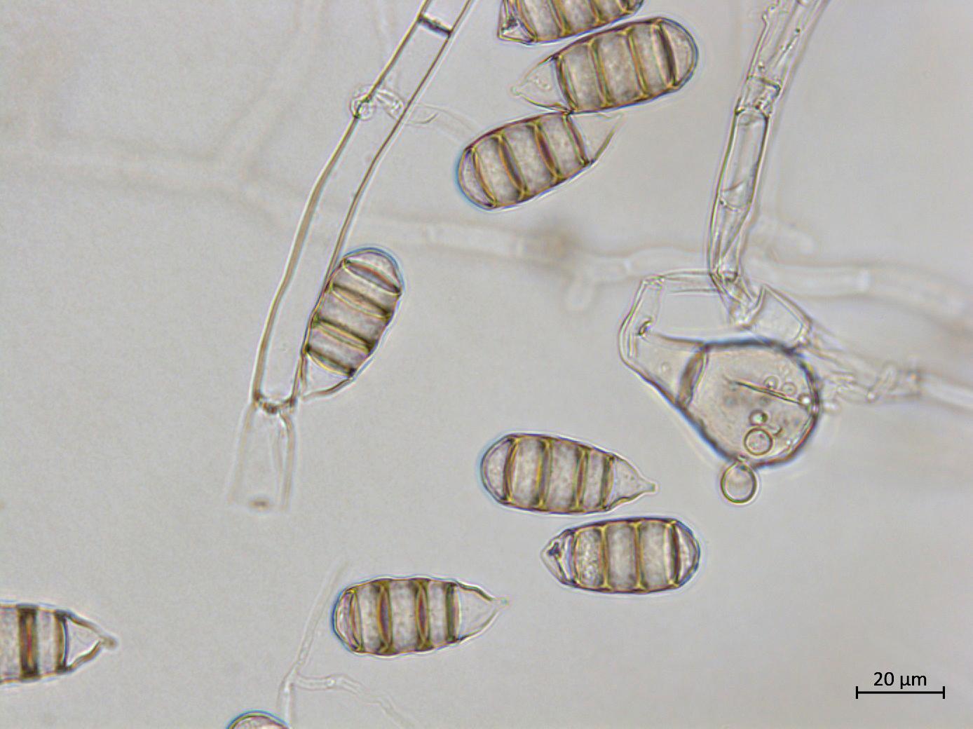 Légende: Conidies et conidiophore de Cephaliophora tropica.