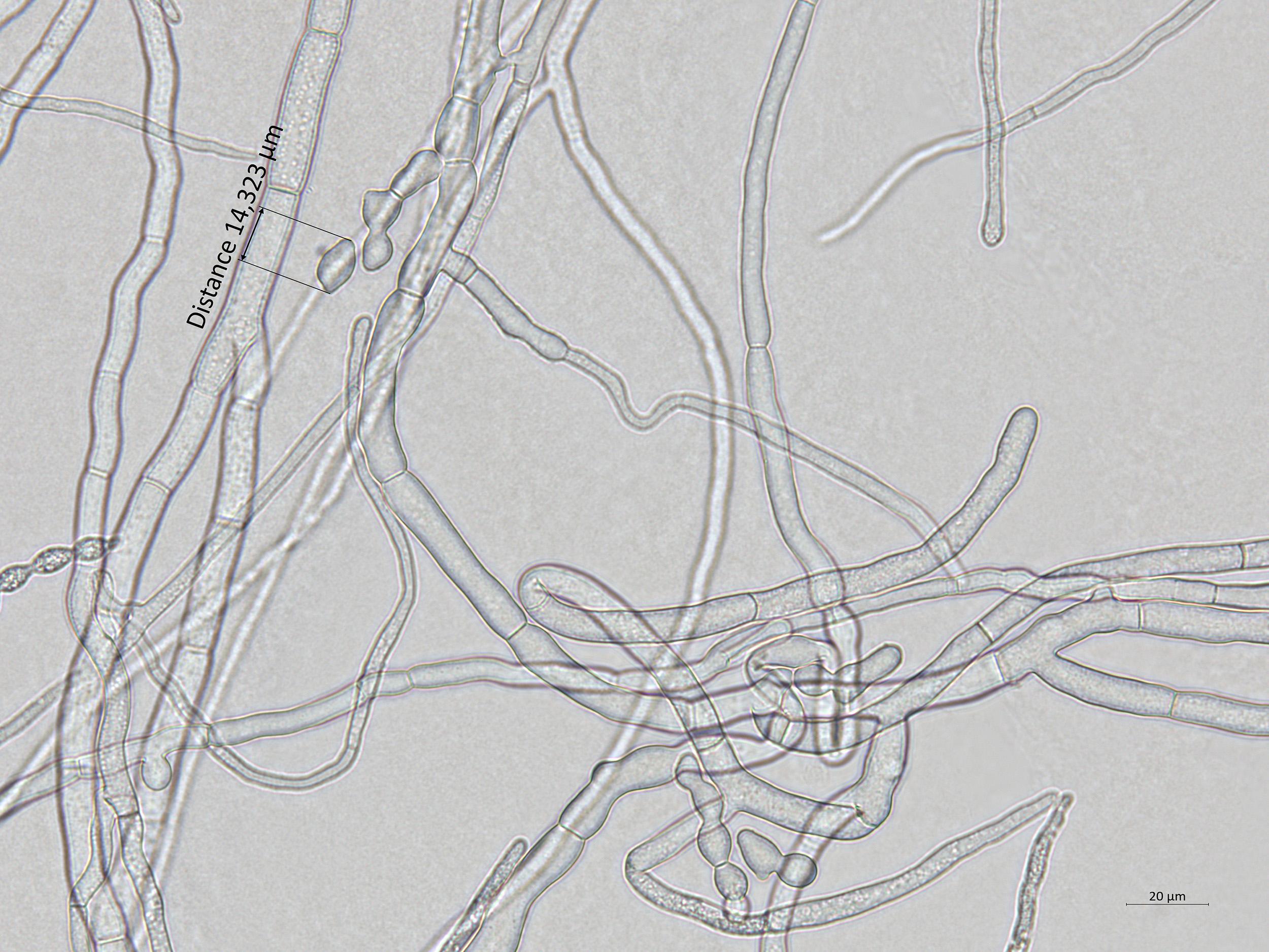 : Hyphes et conidies de Monilinia polystroma.